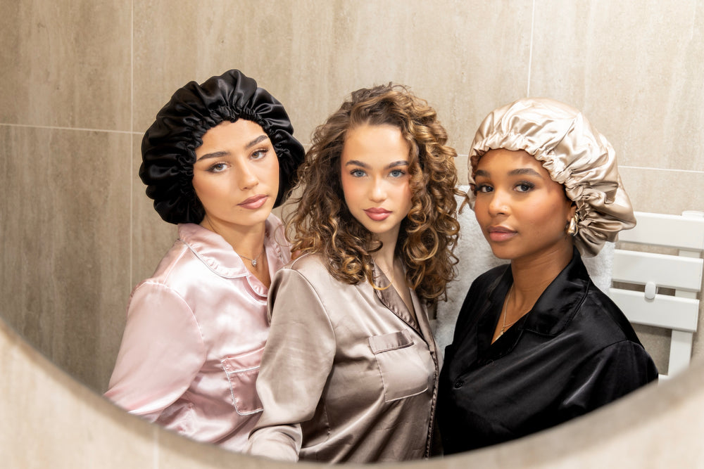 Porter un bonnet en satin de soie permet de limiter les frottements pendant le sommeil, de réduire la casse et les frisottis, et de préserver l’hydratation des cheveux.