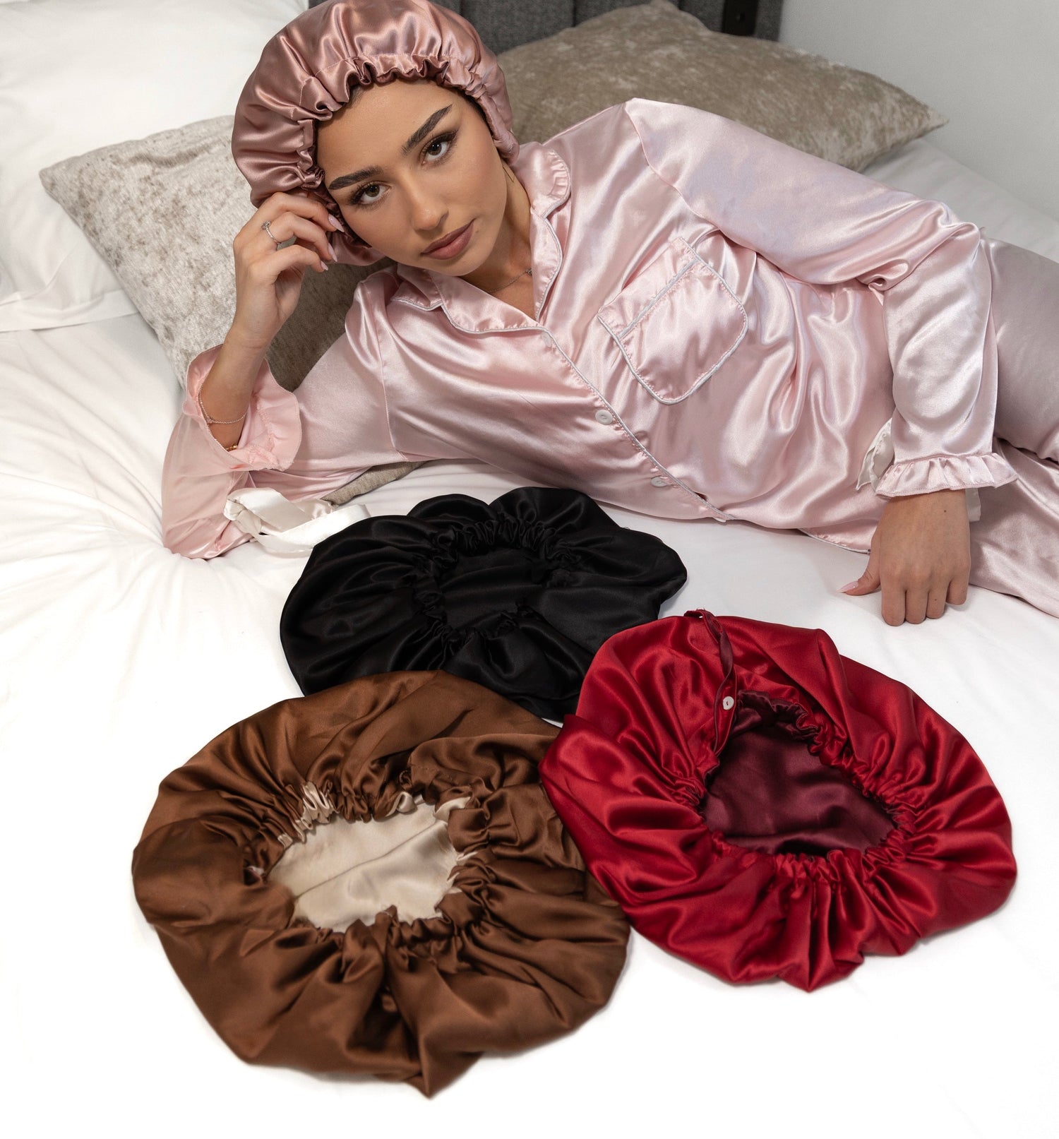 Nos bonnets en satin de soie réversibles
